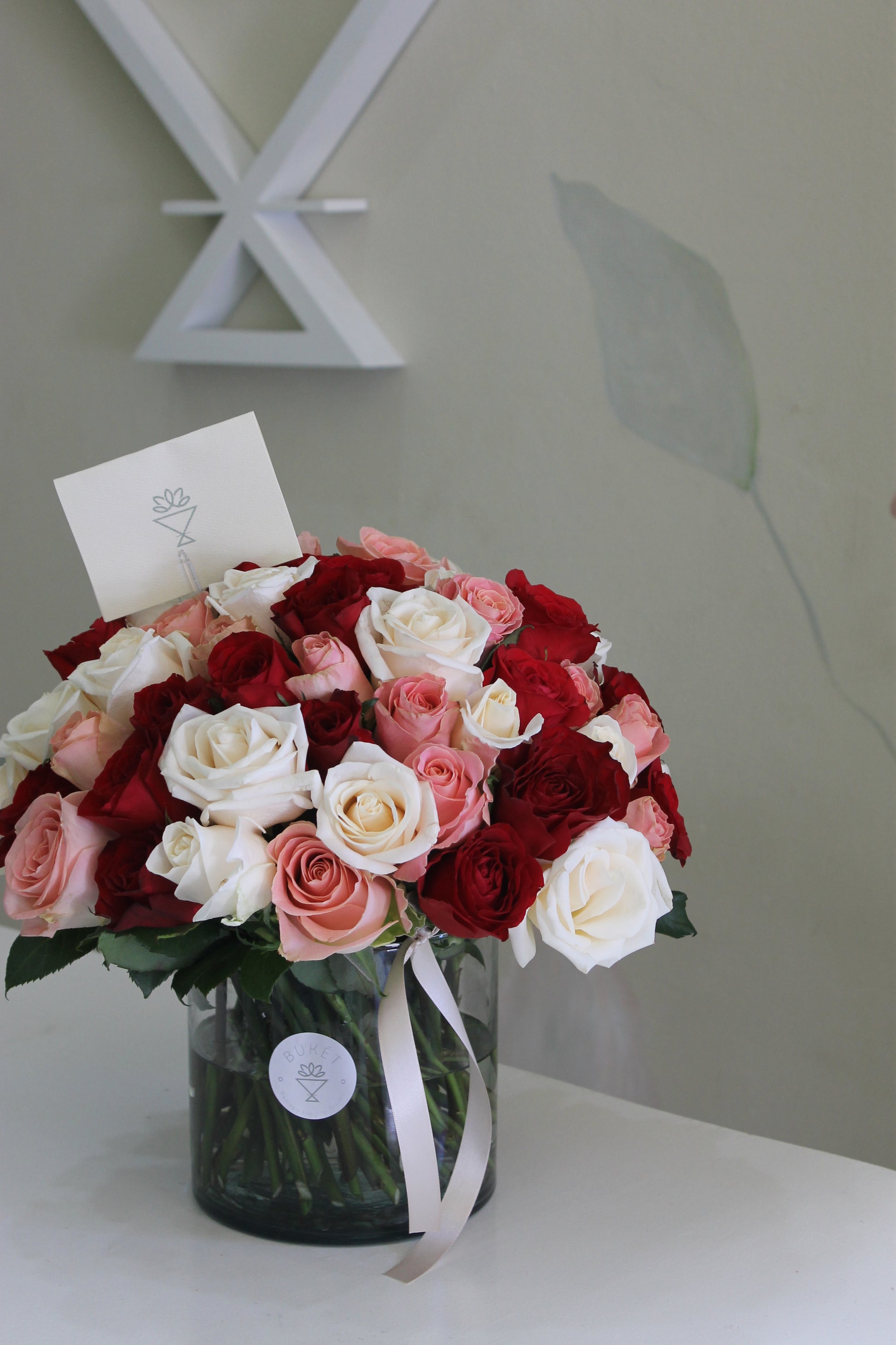Arreglo de 75 rosas en tu color favorito. Puedes seleccionar un solo color o alguna de las combinaciones más pedidas!!