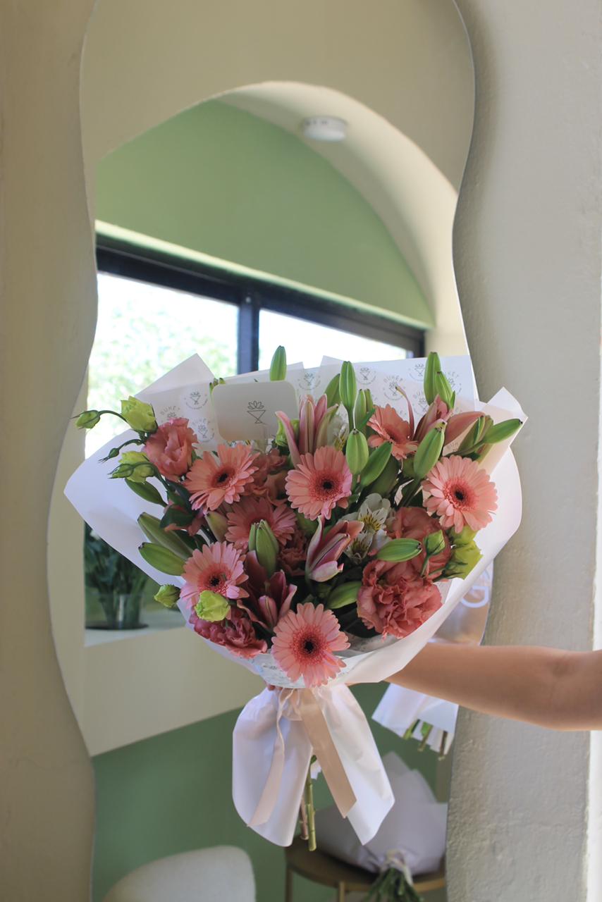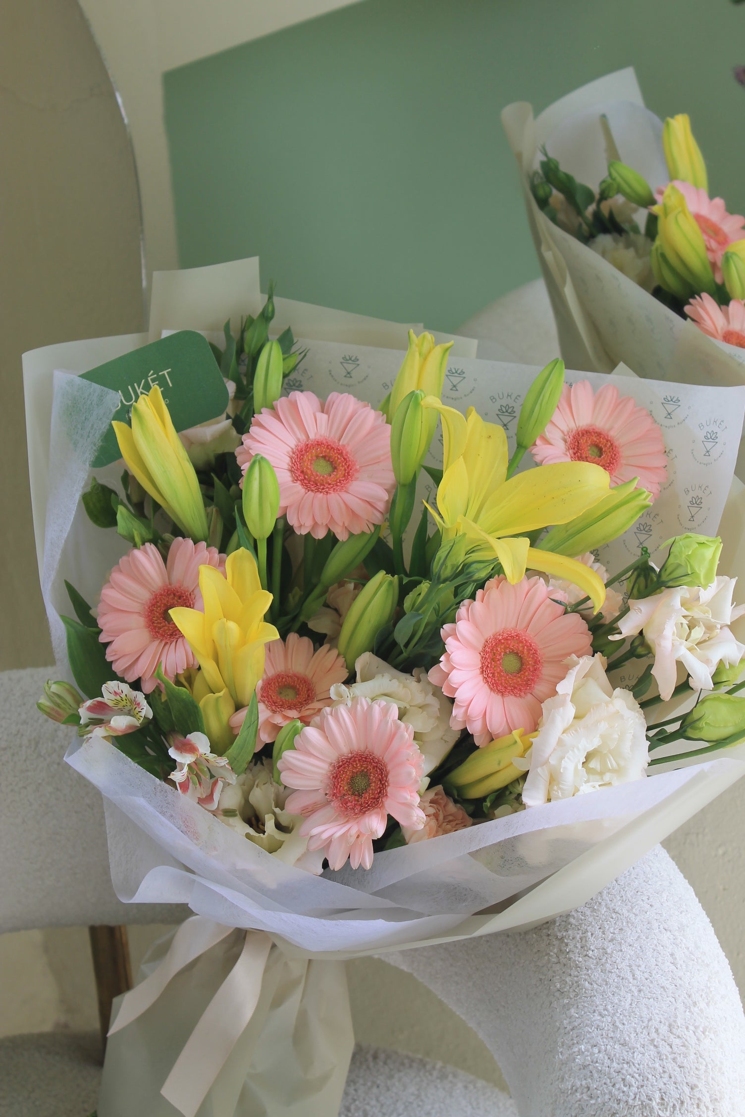 Combinación de mini gerberas, lilies y alstroemerias. Ideal para alegrarle el día a cualquiera que lo reciba!!
