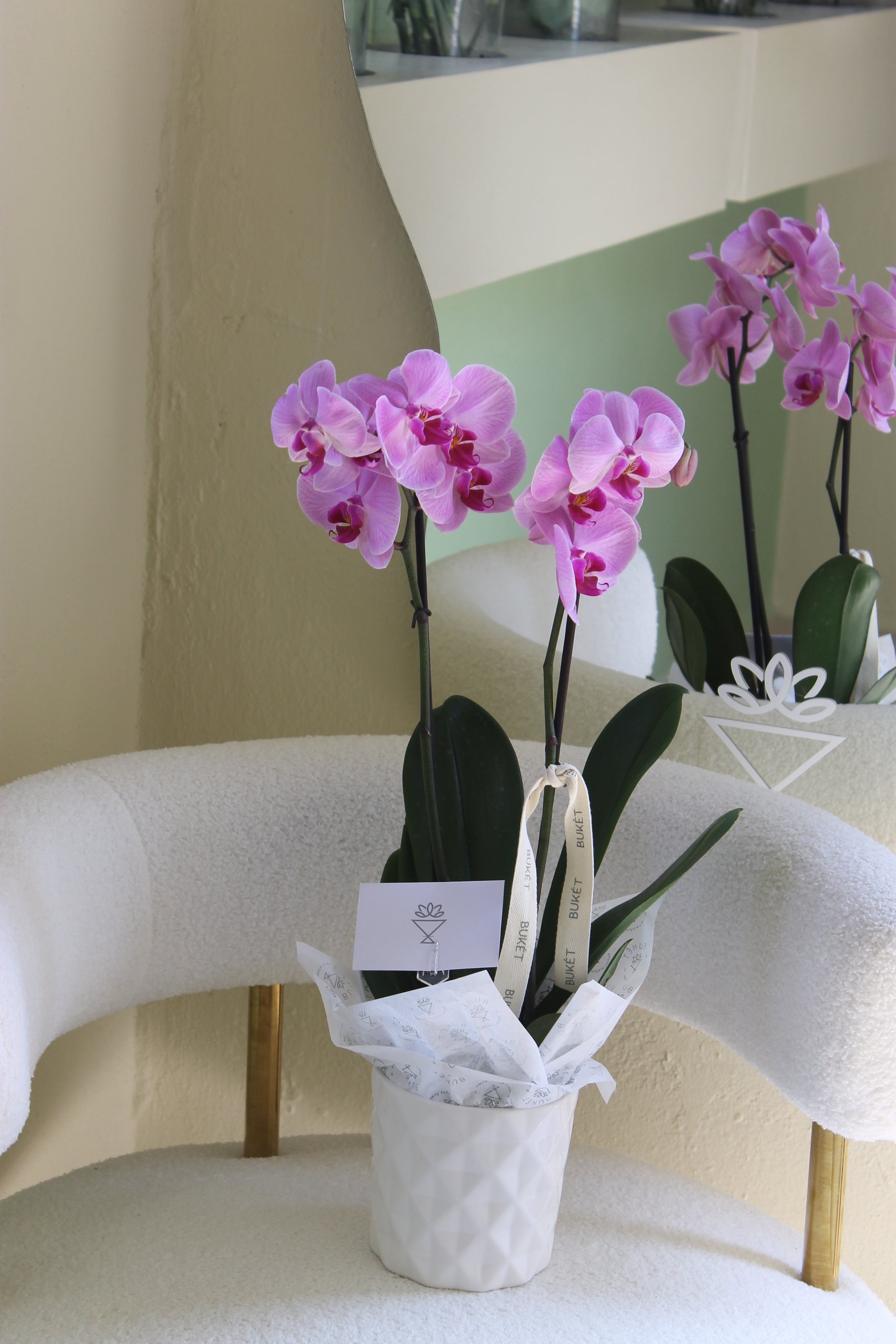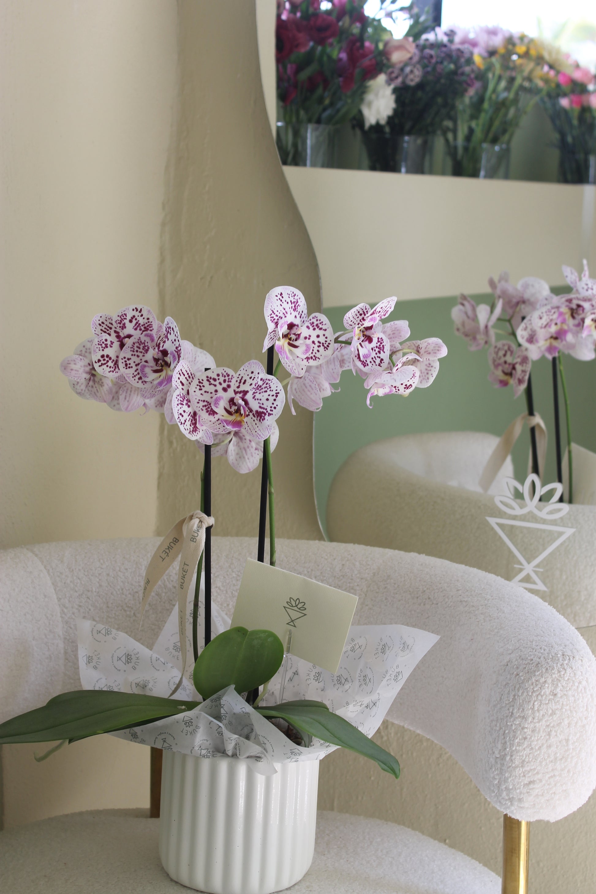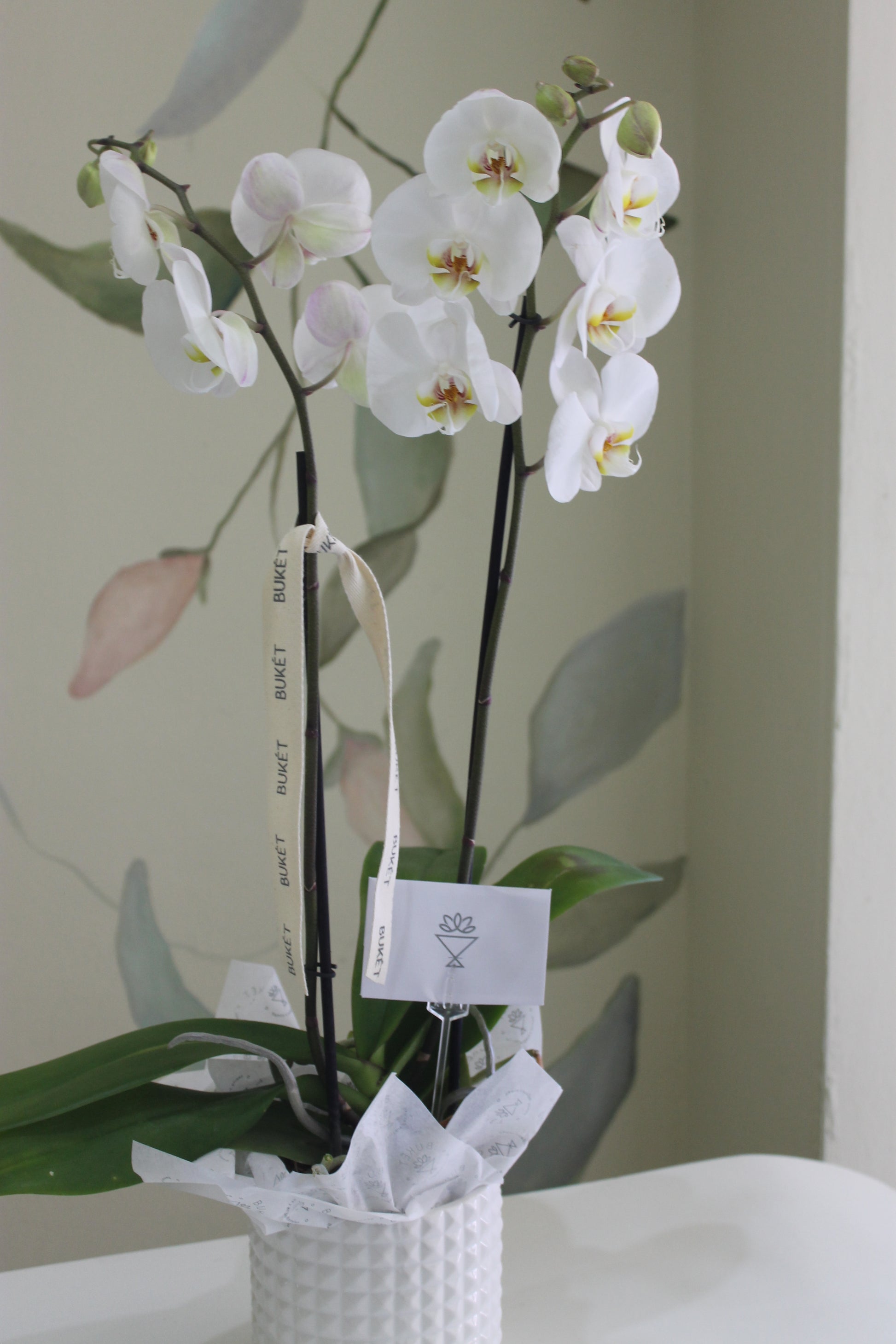 Maceta de Orquídea Phalaenopsis (2 varas) en base de cerámica